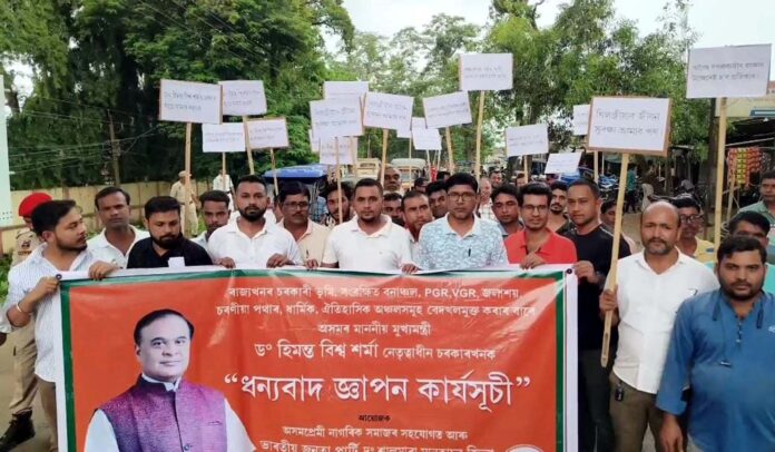 জিলা বিজেপিৰ সভাপতি ৰঞ্জিত কুমাৰ সাহা আৰু প্ৰাক্তন সভাপতি আলতাফ হুছেইনৰ নেতৃত্বত শতাধিক বিজেপি নেতা-কৰ্মীয়ে হাতে হাতে প্লে’কাৰ্ড আৰু বেনাৰ লৈ বিজেপি কাৰ্যালয়ৰ পৰা শোভাযাত্ৰা উলিয়ায়। ৰাজ্যৰ উচ্ছেদৰ ঘটনাক সমৰ্থন জনাই মুখ্যমন্ত্ৰী হিমন্ত বিশ্ব শৰ্মাক ধন্যবাদ জ্ঞাপন কাৰ্যসূচী ৰূপায়ন কৰে দক্ষিণ শালমাৰা-মানকাচৰ জিলা বিজেপিয়ে।