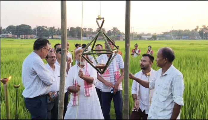 ডিজিটেল ডেক্স, হাটশিঙিমাৰীঃ আজি কাতি বিহু । অসমীয়া ৰাইজে পৰম্পৰাগত ৰীতি-নীতিৰে ৰাজ্যত পালন কৰিছে কাতি বিহু । পৰম্পৰা অক্ষুণ্ণ ৰাখি দক্ষিণ শালমাৰা-মানকাচৰ জিলা কৃষি বিভাগে আজি অসম-মেঘালয় সীমান্তৱৰ্তী ধানুৱা গাঁও পঞ্চায়তৰ শতাধিক অসমীয়া হাজং কৃষক পৰিয়ালৰ সহযোগত কাতি বিহু পালন কৰে । জিলাখনৰ ধানুৱা গাঁও পঞ্চায়ত প্ৰাঙ্গনত জিলা কৃষি বিভাগে কেন্দ্ৰীয় ভাৱে কাতি বিহু উৎসৱ পালন কৰে।